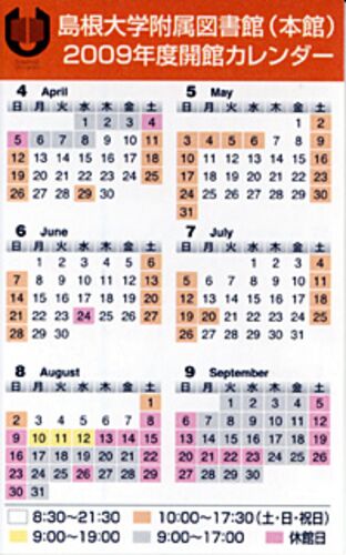 附属図書館(本館)では、携帯に便利なカードサイズの開館カレンダーを毎年作成しています。2009年度版ができましたのでお知らせします。カレンダーは、本館カウンターに常備していますので、どうぞご利用ください。また、開館カレンダーは、携帯版ホームペ…
