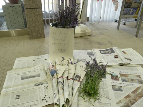 第2回ラベンダー提供会です。 今朝摘んだラベンダーを、朝から本館玄関付近にて提供しています。 ぜひご来館ください。 今年は蜂がよく飛んできていて、彼らと格闘しながらの収穫です。 ドキドキ。この間はススメバチが飛んでいて身の危険を感じ、撤退。 い…