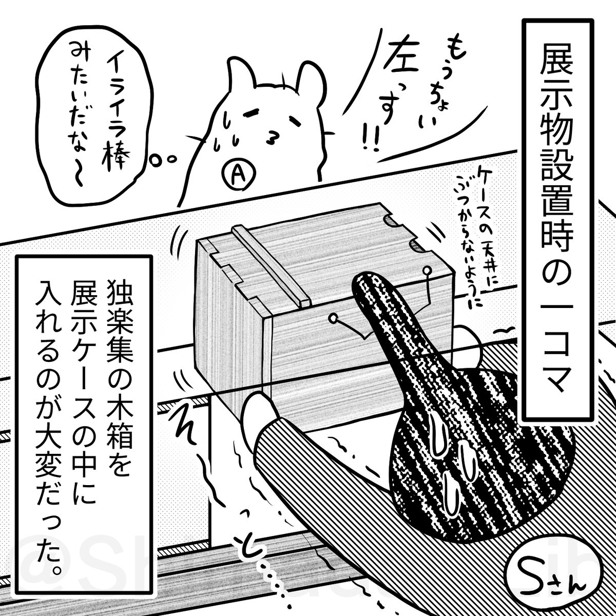 ちなみにこの漫画だと写真を撮ってるだけに見えるSさんですが、次の漫画でわかるとおり、企画展開催に向けて中心となって動かれていて、実は一番お仕事をされています。(展示準備全体の進捗管理、大量の解説パネル作成、会場のレイアウト、巻物を巻く手助けなどなど!)